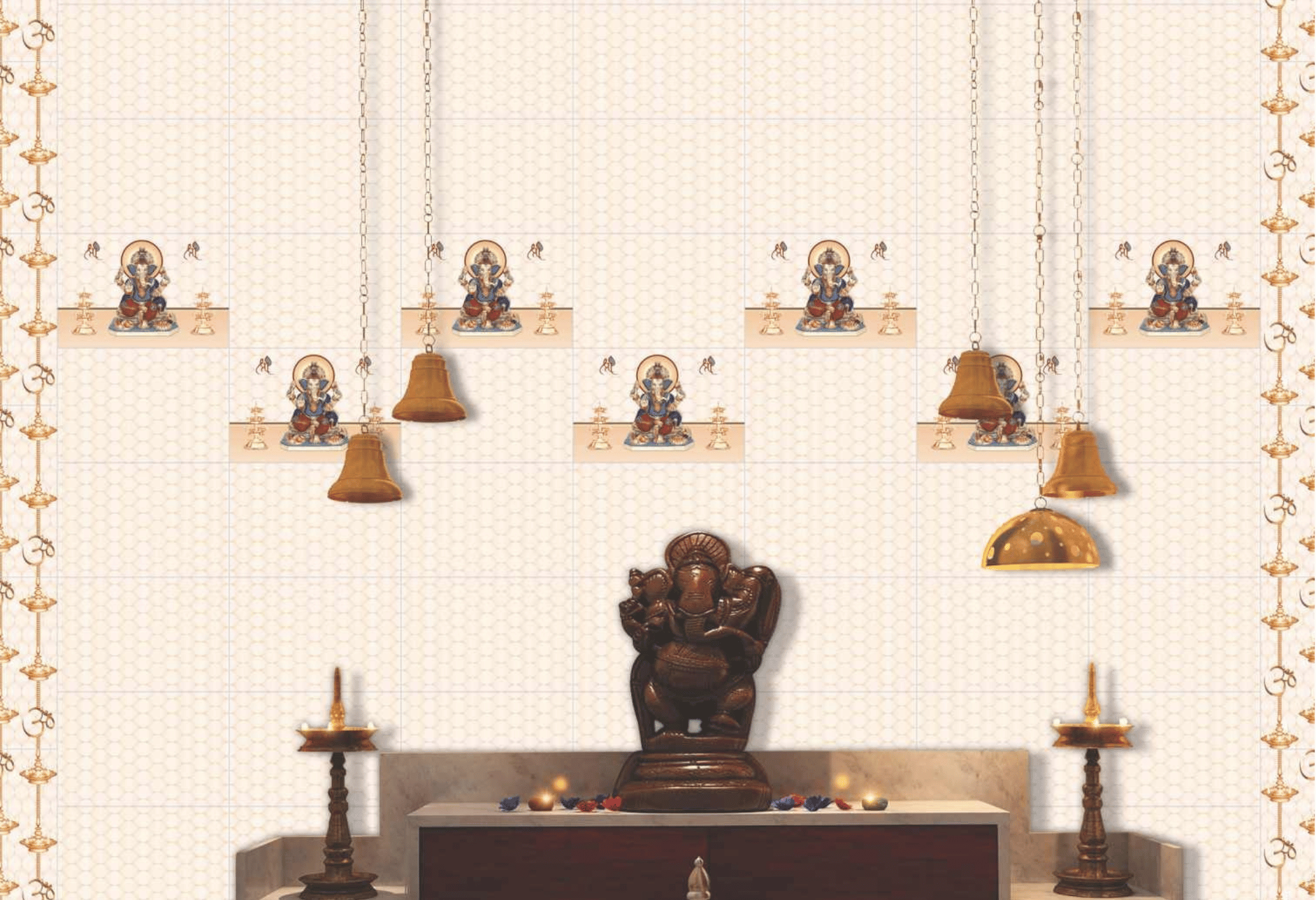 Pooja Room is probably the most sacred room in the house, and so it should be designed keeping in mind the ease of maintenance and cleaning. The design and pooja room tiles used in designing the room should be classic & elegant with clean patterns. Not only that, but it also needs to have some stunning elements that will compel you to stay there and pray some more.
